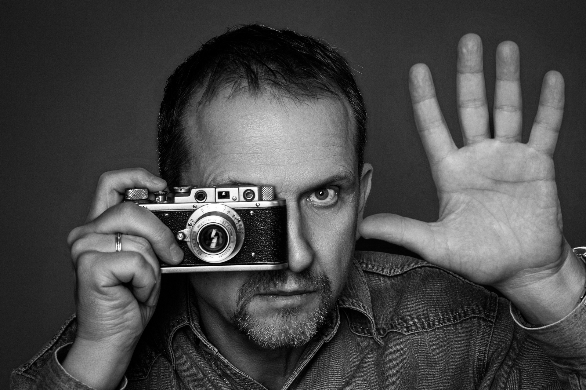 Это мой первый опыт съемки самого себя за более, чем 50 лет, как фотокамера попала ко мне в руки впервые. Мне давно хотелось сделать фотографии себя с отцовским фотоаппаратом «Зоркий». Этот фотоаппарат подарила моему папе его мама, моя бабушка Нина, на его 14-летие в 1952 году. На эту камеру папа учил меня фотографировать, и я провел с ней в руках свои школьные годы, фотографируя своих одноклассников и друзей. Эти фотографии хранятся у меня до сих пор. И вот опять «Зоркий» в деле в качестве фотомодели. По-моему, он неплохо позировал для своих лет.
